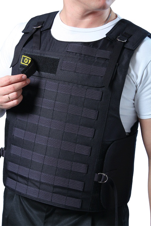 На бронежилетах «Страж» и «Шилд» на спинной части предусмотрена перемычка для переноски бронежилета.